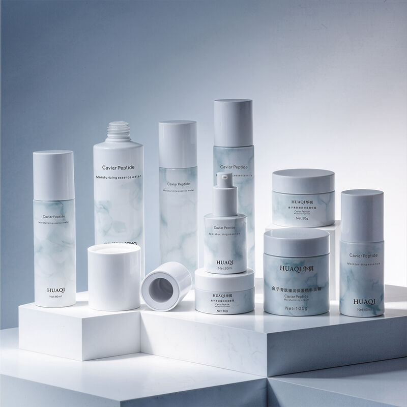 New Skincare Set Cosmetic Packaging Set Glass Bottle Cream Jar Special Marble Texture Process